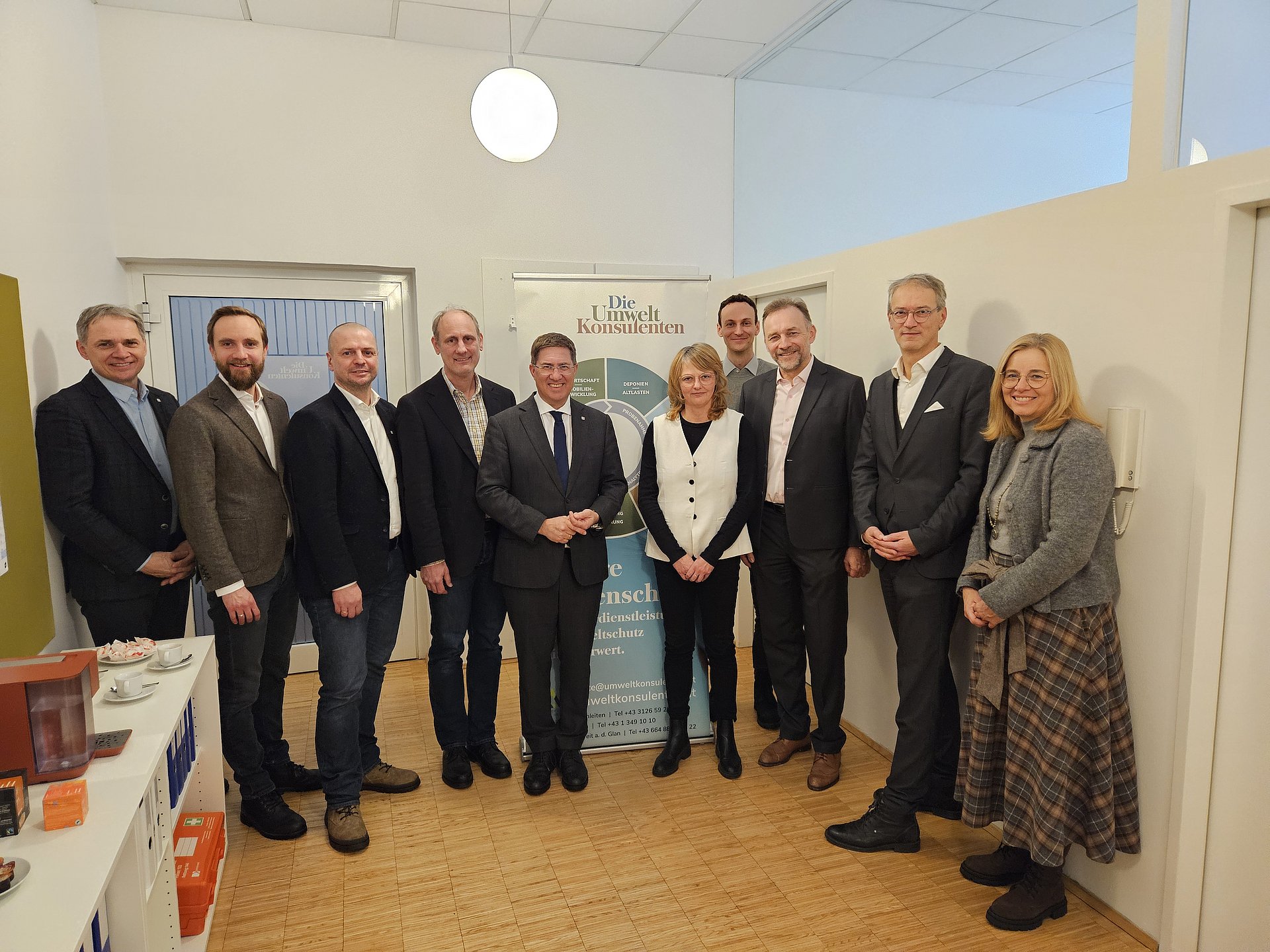 Foto v.l.n.r.: Peter Jungreithmair, MBA (GF Wels Marketing & Touristik GmbH), Wirtschaftsstadtrat Dr. Martin Oberndorfer (Stadt Wels), Stadtrat Thomas Rammerstorfer (Stadt Wels), Dipl.-Ing. Dr. Christoph Angerbauer (Niederlassungsleiter Wels), Bürgermeister Dr. Andreas Rabl (Stadt Wels), Paulina Markiewicz (Standort Wien), Paul Karl (Standort Wels), Hon-Prof. (FH) Dipl.-Ing. Dr. Arne M. Ragoßnig, MSc. (OU) (Geschäftsführer Die Umweltkonsulenten), Dipl.-Ing. Dr. Jürgen Maier (Geschäftsführer Die Umweltkonsulenten), Vizebürgermeisterin Christa Raggl-Mühlberger (Stadt Wels)