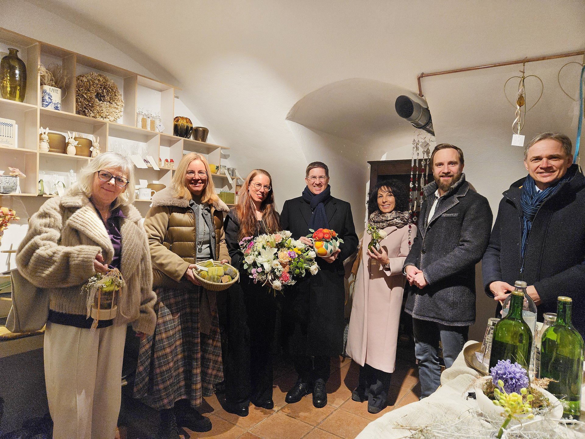 Foto v.l.n.r.: Stephania Pfeffer (Gerstl Bau / Gortana Passage), Vizebürgermeisterin Christa Raggl-Mühlberger (Stadt Wels), Barbara Krausgruber (Inhaberin), Bürgermeister Dr. Andreas Rabl (Stadt Wels), Heidi Fehringer (Gerstl Bau / Gortana Passage), Wirtschaftsstadtrat Dr. Martin Oberndorfer (Stadt Wels), Peter Jungreithmair, MBA (GF Wels Marketing & Touristik GmbH)