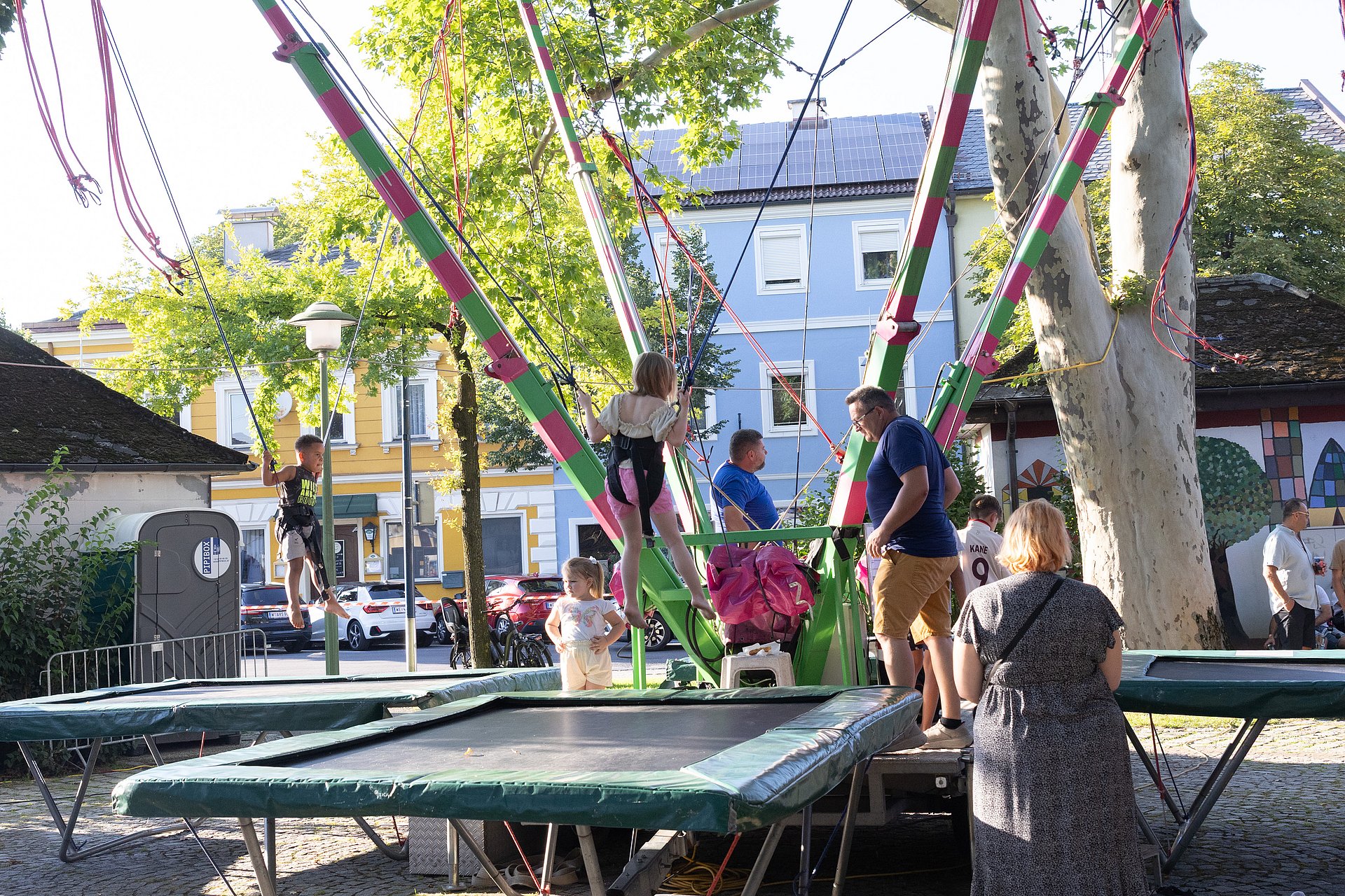 Auch für die jungen Gäste war bestens gesorgt: Hüpfburg, Kinderschminken mit „Mama Cloud’s“, Basketballkorb, ein Feuerwehroldtimer sowie beeindruckende US-Cars des 1. Österr. US-Car Clubs sorgten für strahlende Kinderaugen. Sportlich und artistisch wurde es mit den Vorführungen des „Pole Aerial Tanzstudios“ und „Jumping Passion by Julia“.