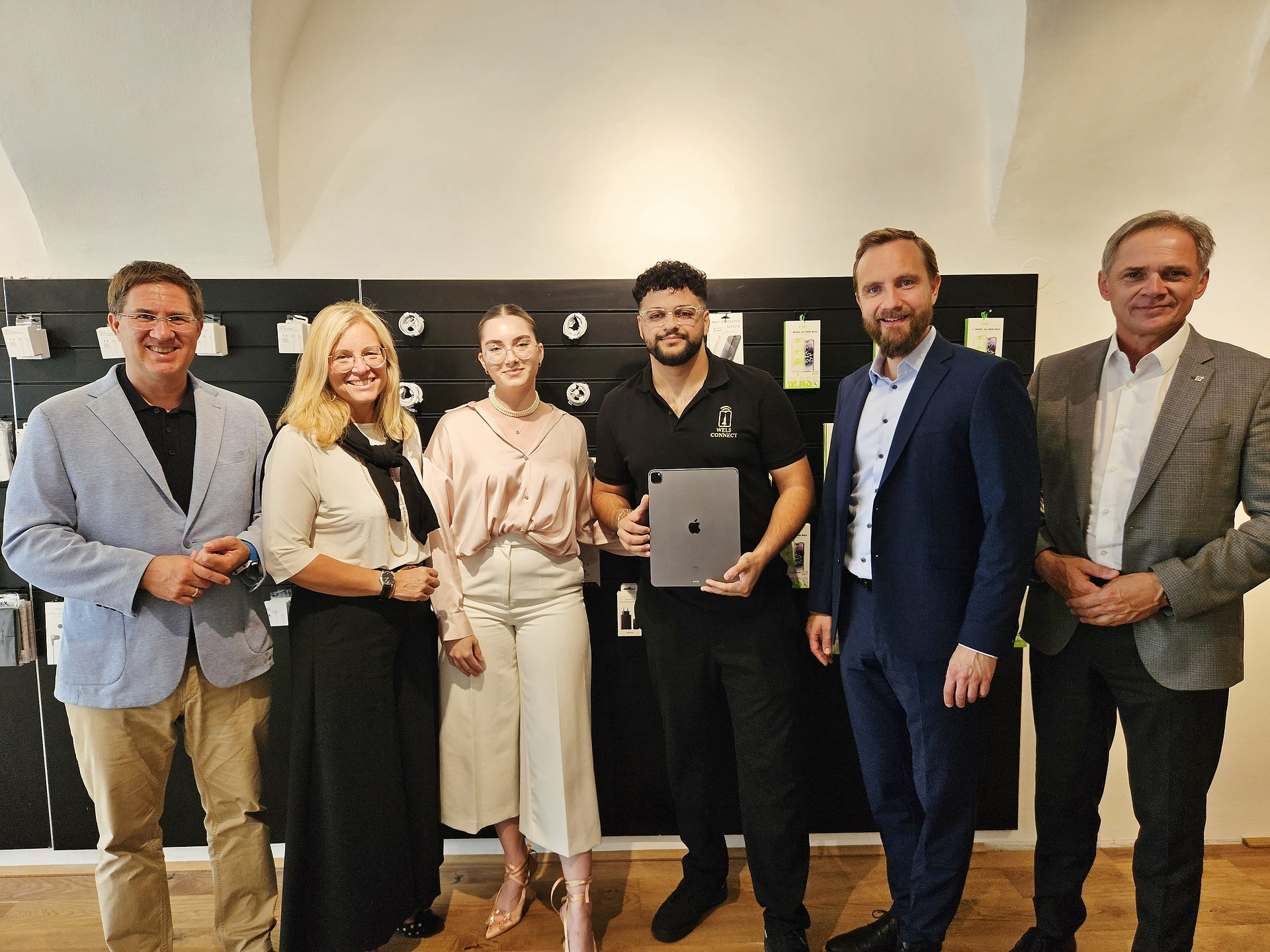 Foto v.l.n.r.: Bürgermeister Dr. Andreas Rabl (Stadt Wels), Vizebürgermeisterin Christa Raggl-Mühlberger (Stadt Wels), Andreea Naomy Gruita (Mitarbeiterin), Karoch Votman (Inhaber), Wirtschaftsstadtrat Dr. Martin Oberndorfer (Stadt Wels), Peter Jungreithmair, MBA (GF Wels Marketing & Touristik GmbH)